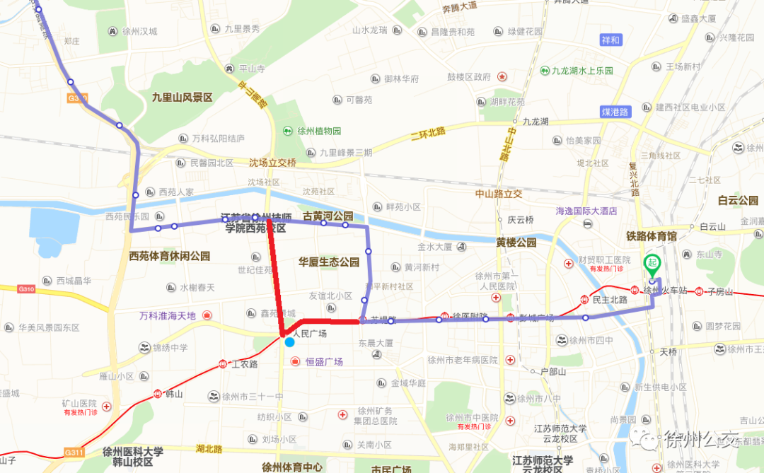5、616路:由徐礦城東發(fā)車后,行駛至蘇堤北路與黃河南路交叉口后左轉(zhuǎn)進入黃河南路,經(jīng)黃河南路、西安北路,恢復原線路。