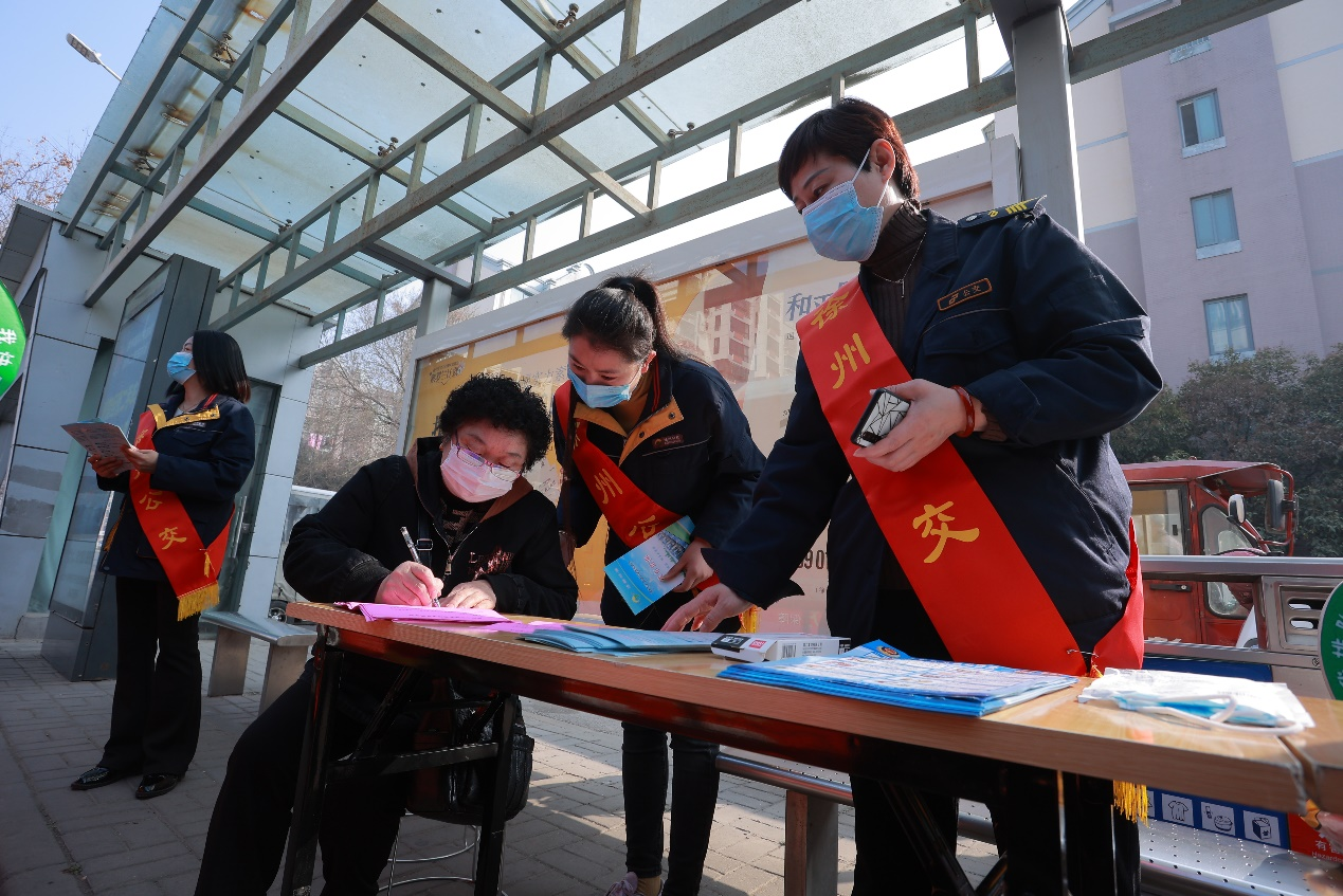 活動現(xiàn)場,懸掛起了標(biāo)有“公交送溫暖、服務(wù)走在前”的橫幅標(biāo)語,志愿者們統(tǒng)一身著行業(yè)服,身披鮮紅綬帶。大家分工明確,以飽滿的精神面貌向市民宣傳綠色出行,發(fā)放《徐州公交乘車線路指南》,引導(dǎo)市民文明乘車,解答市民問題,協(xié)助駕乘人員做好“健康碼”查驗(yàn)工作,幫助老年人注冊“健康碼”,教老年人使用“徐州公交”APP查詢公交線路實(shí)時狀態(tài),攙扶特需乘客上下車等。