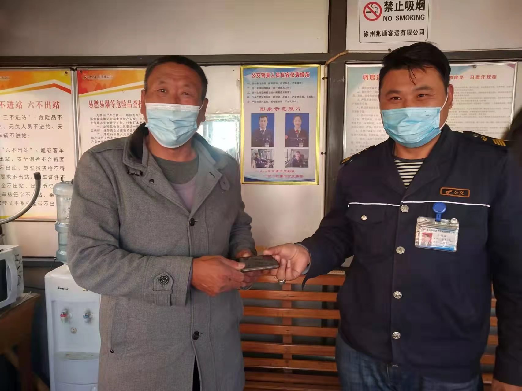 2022年3月9日早上6點多,家住銅山區(qū)房村鎮(zhèn)的梁先生在宣武市場轉(zhuǎn)乘85路公交車,由于下車匆忙,不慎把手機(jī)丟在了車上,幸虧被駕駛員吳寶撿到交到車隊。管理人員通過手機(jī)上的電話號碼聯(lián)系到失主家人,失主于下午14:20分趕到宣武車站拿回手機(jī),并對駕駛員的這種拾金不昧的行為表示感謝!