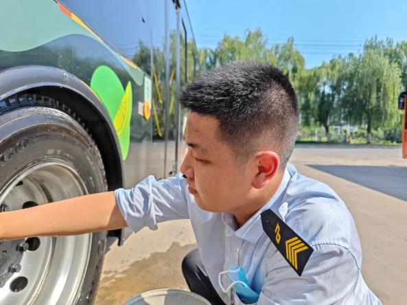 “衣服都濕透了,別弄了,先歇歇吧?!薄皼]事,我把衛(wèi)生弄好了就去?!?.....眼前這個小伙是603路的張?zhí)祧危弥萃r間,他一邊用布擦拭著輪轂,一邊用手擦拭臉上的汗珠。忙完后,發(fā)現發(fā)車時間已到,他立即回到駕駛室,等待乘客的到來和發(fā)班指令,沒來得及喝上一口水。