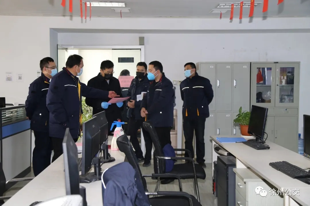 2月11日徐州市交控集團黨委書記、董事長賈泉涌到公交智能調(diào)度平臺查看復(fù)運前防控工作
