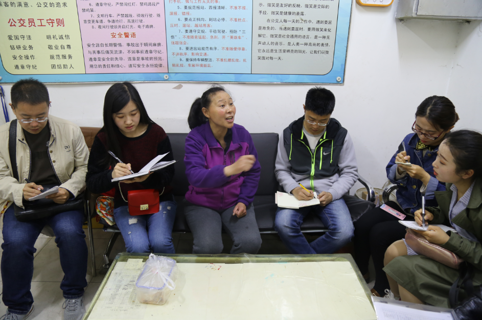 孫師傅發(fā)車了,通訊員們在跟車采訪環(huán)節(jié),仔細(xì)觀察、記錄孫師傅在行車中的“一舉一動”,尋找采訪細(xì)節(jié)。在孫師傅休停時,大家紛紛拿出相機(jī)、手機(jī),切磋拍照經(jīng)驗(yàn)。為達(dá)到培訓(xùn)目的,采訪前要求通訊員們通過認(rèn)真思考,提前擬定好了采訪提綱,現(xiàn)場采訪環(huán)節(jié),通訊員們積極踴躍根據(jù)自己擬定好的問題對孫師傅提問,并認(rèn)真記錄。通訊員“現(xiàn)場練兵”在輕松愉快的氣氛中結(jié)束了,大家表示這種培訓(xùn)形式有趣有收獲。