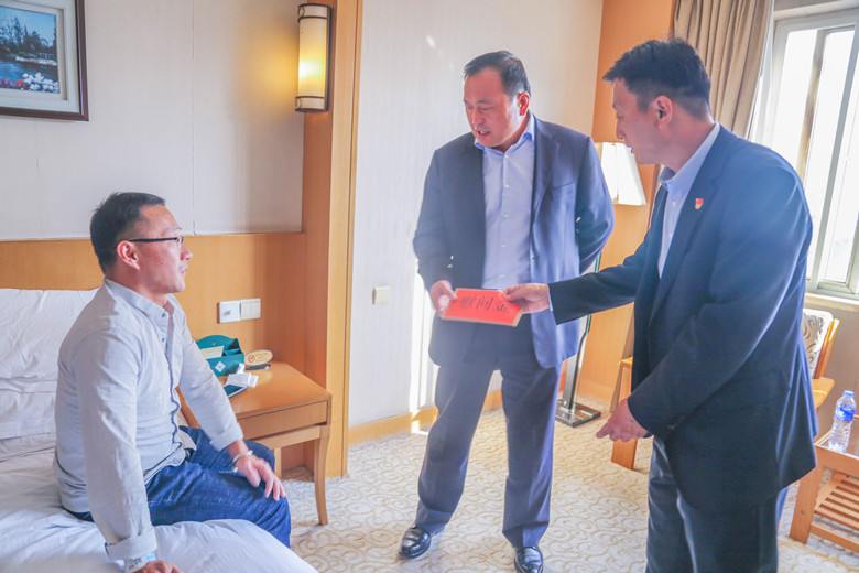 打過8針造血干細(xì)胞動(dòng)員劑,10月30日上午開始采集?!袄习?,加油!”兒子在病床前給鄭剛鼓勁兒,雖然經(jīng)過了幾天動(dòng)員針的不適反應(yīng),此時(shí)鄭剛依舊很堅(jiān)定:“我比別人的打針反應(yīng)大,只要能救人一命,這都不算啥,我現(xiàn)在就希望孩子能盡快康復(fù)?!毙熘菔屑t十字會(huì)副會(huì)長李永衛(wèi)為鄭剛頒發(fā)了“捐獻(xiàn)造血干細(xì)胞榮譽(yù)證書”,為他點(diǎn)贊:“你是英雄!”患者家人在感謝信中寫道:“您這種高尚的壯舉給了我們?nèi)疑畹南M!?/span>