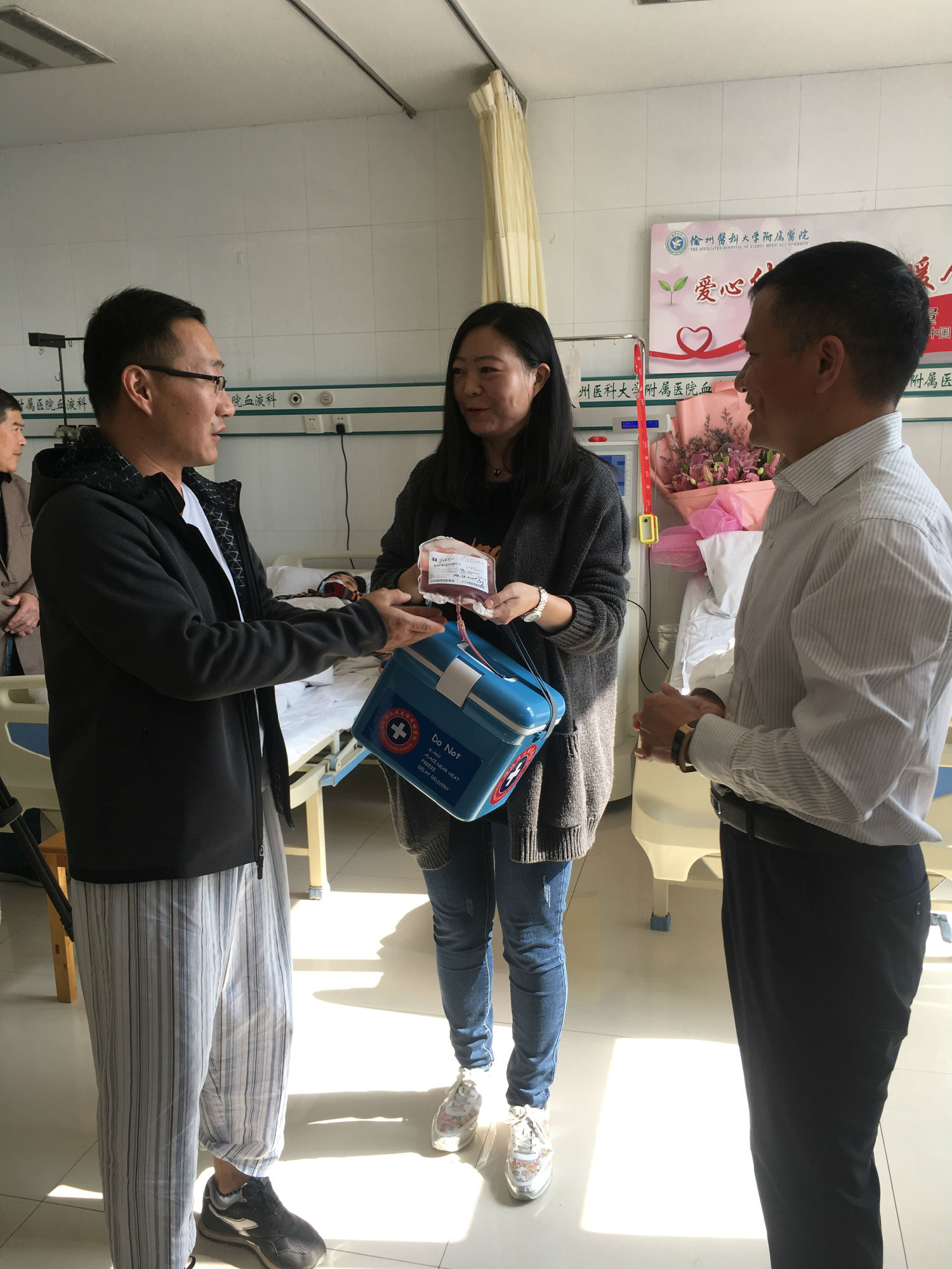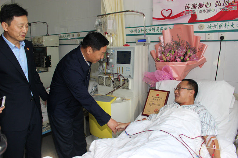 自7月底接到通知的這段時(shí)間,鄭剛一直積極配合著,希望保持最佳的身體狀態(tài)進(jìn)行捐獻(xiàn)。他努力克制自己,戒煙戒酒,鍛煉身體,增加高營養(yǎng)的飲食調(diào)理。喝不慣牛奶的他甚至強(qiáng)迫著自己一天喝兩包奶。國慶節(jié)幾天,他突然感冒發(fā)低熱,竟忍著沒敢吃藥……鄭剛所在的單位也給予了大力的支持和配合,10月25日入院,徐州公交為他舉辦了隆重的歡送儀式,董事長、總經(jīng)理杜紅軍等領(lǐng)導(dǎo)給他送來了慰問金,安排好他的休息時(shí)間。