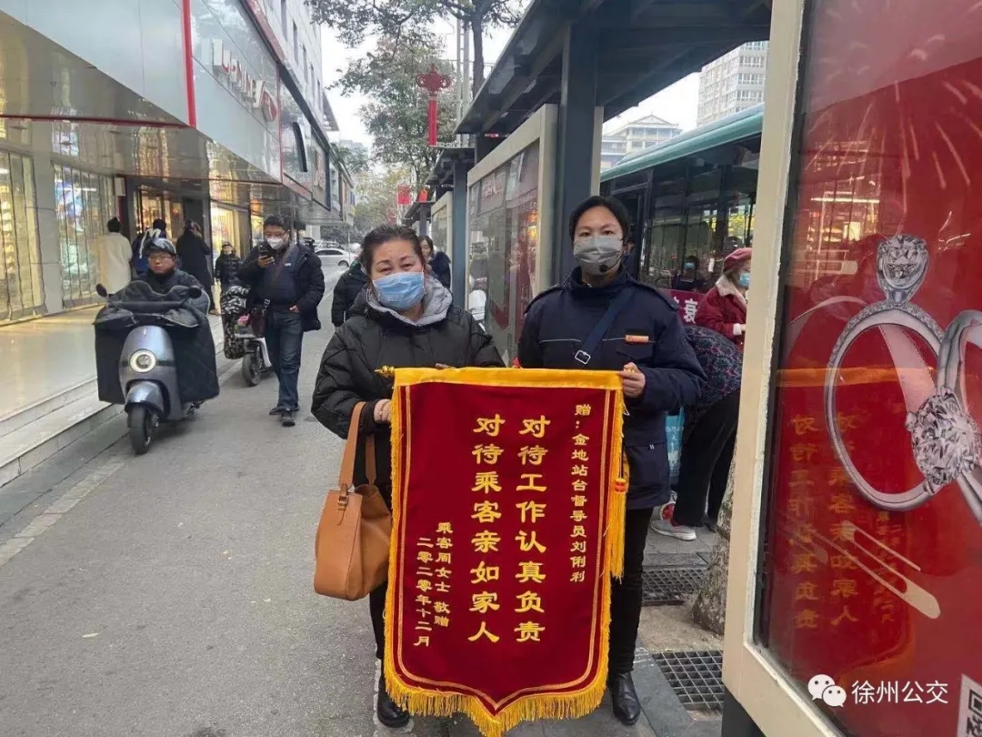 錦旗上印有“對(duì)待工作認(rèn)真負(fù)責(zé),對(duì)待乘客親如家人”的字樣,在這句贊美之言的背后有著這樣一段暖心故事:幾天前周大爺去超市采購(gòu),拎著兩包東西準(zhǔn)備坐車,正在站臺(tái)執(zhí)勤的劉俐利看見了老遠(yuǎn)就迎上去,趕忙接過(guò)老人手里的東西,安頓好老人坐在候車位上。隨后提醒老人家車快進(jìn)站了,準(zhǔn)備好乘車卡和口罩,這時(shí)老人才發(fā)現(xiàn)自己的口罩忘在超市收銀臺(tái)了,劉俐利趕緊從隨身攜帶的包里拿出一個(gè)口罩給了周大爺,并且?guī)椭艽鬆敯褍砂鼥|西提上車并幫他找好座位。