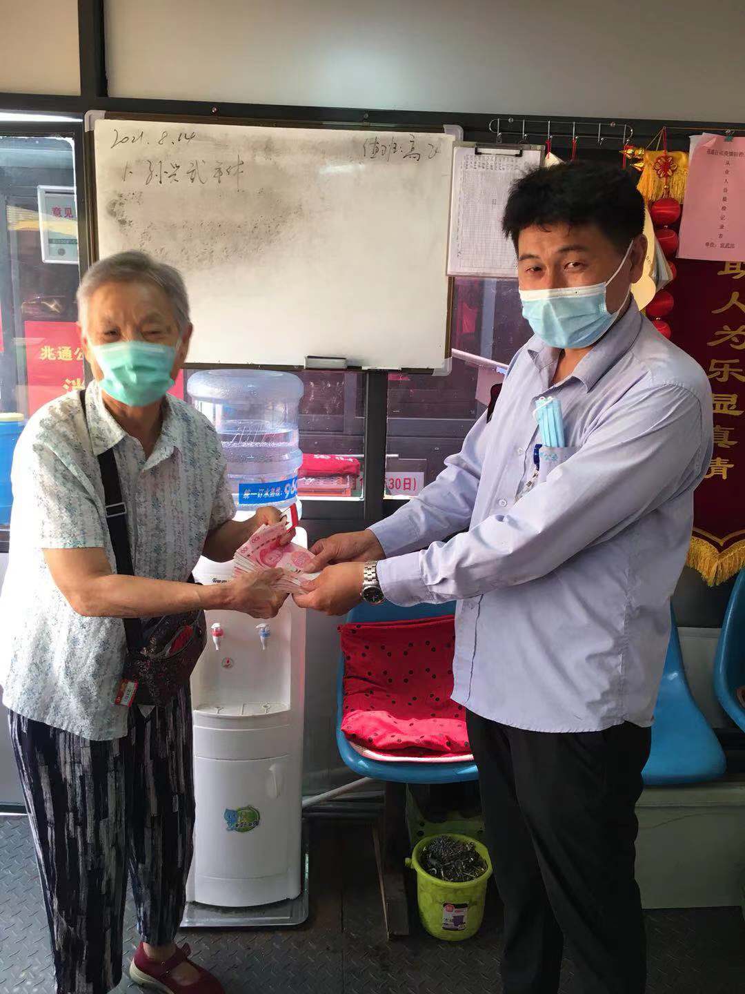 在詢問后得知,老人姓宮,從中心醫(yī)院乘車前往宣武市場(chǎng)購物,在到達(dá)目的地后,不慎將錢包遺落車上,在核對(duì)身份證信息后,段師傅將錢包還給了老人。宮老太為表感激之情,8月15日,特意制作了一面錦旗送到調(diào)度室,感謝段師傅拾金不昧的高尚品質(zhì)。