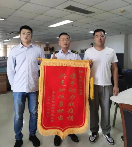 8月4日上午,泉山區(qū)桃園街道辦事處把一面印有“攜手助力戰(zhàn)疫情,共克時艱勇?lián)?dāng)”的錦旗和一封感謝信送到公交集團(tuán)。