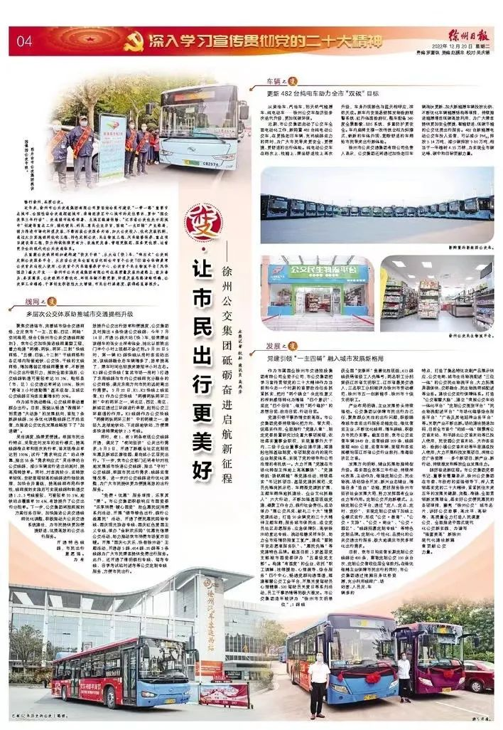 12月20日《徐州日報》04版刊登文章《變.讓市民出行更美好——徐州公交集團(tuán)砥礪奮進(jìn)啟航新征程》