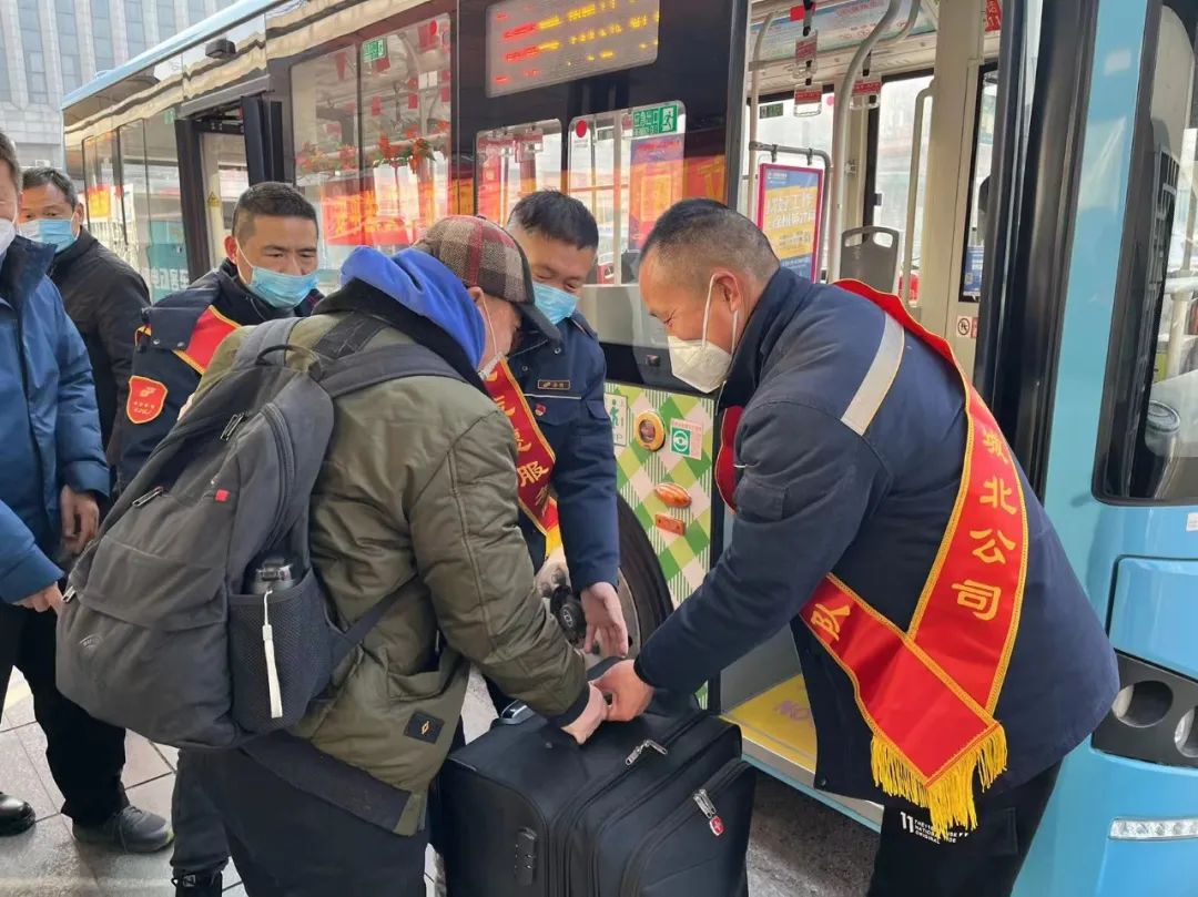 春運(yùn)期間,城北巴士公司黨支部組織愛(ài)心服務(wù)隊(duì)和黨員先鋒崗在徐州站等客流密集站點(diǎn)開展志愿服務(wù),維持現(xiàn)場(chǎng)乘車秩序,幫助乘客搬運(yùn)行李,開展“三品”檢查,他們以嚴(yán)謹(jǐn)?shù)淖黠L(fēng)、熱情的態(tài)度、溫暖的話語(yǔ),贏得了乘客廣泛好評(píng)。此外,文明引導(dǎo)員在站點(diǎn)詳細(xì)記錄客流情況,提醒乘客戴好口罩,有序上車,并傾聽(tīng)乘客反饋意見(jiàn)。