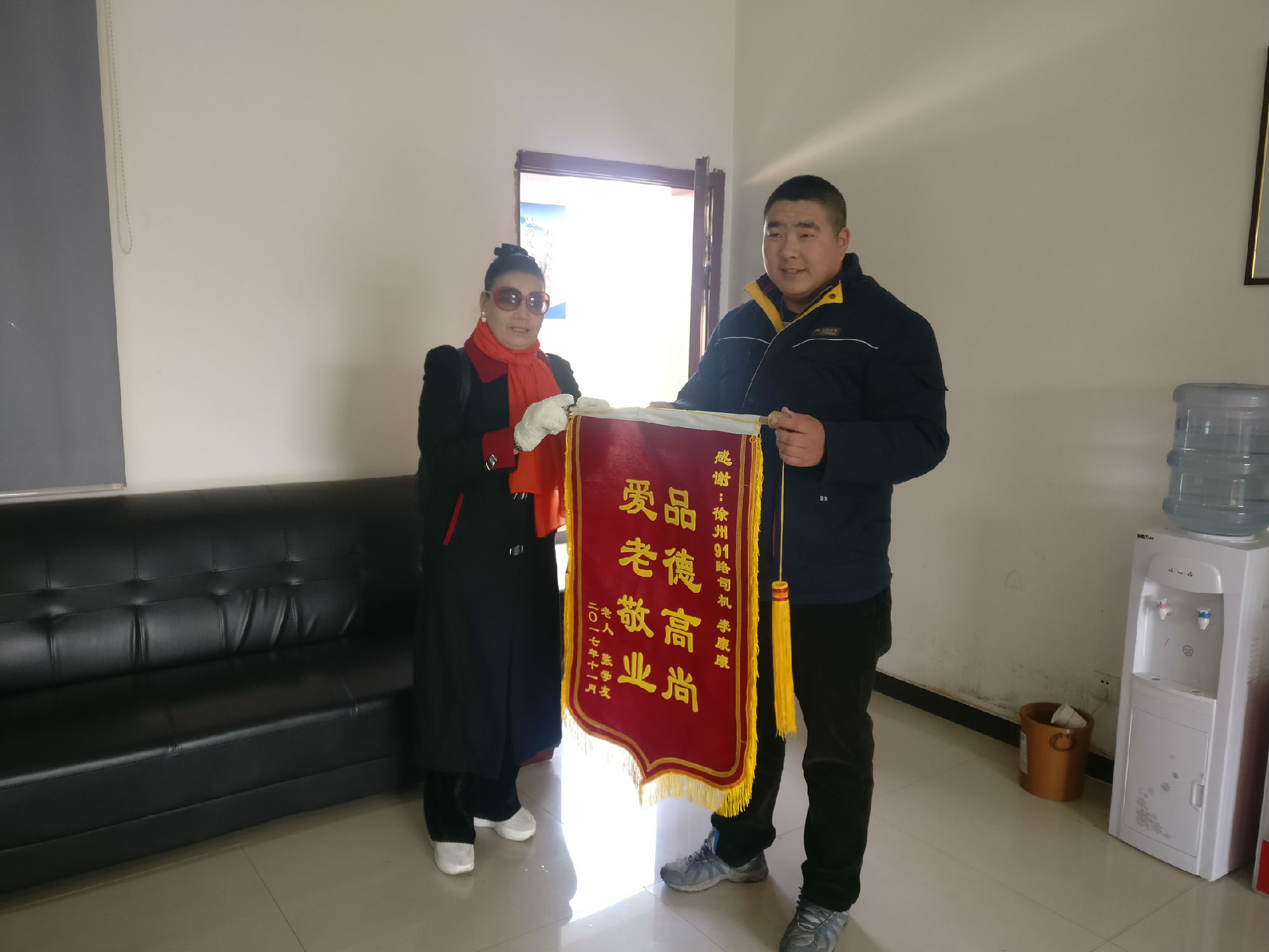 11月21日,李康康正執(zhí)行末班車的任務(wù),夜晚寒冷,車上乘客也比較少。即將到達(dá)終點站時,車上僅剩一位年近70的張女士,李康康看她神情慌張地看著窗外。經(jīng)詢問,得知張女士剛搬到新城區(qū)住不久,迷路了。考慮到張女士年齡較大,于是就把想送張女士回家的想法向線路長及公司做出了匯報。經(jīng)批準(zhǔn)后,他開車將張女士送回了家。事后,張女士為了表達(dá)謝意,給李康康送來一面錦旗。