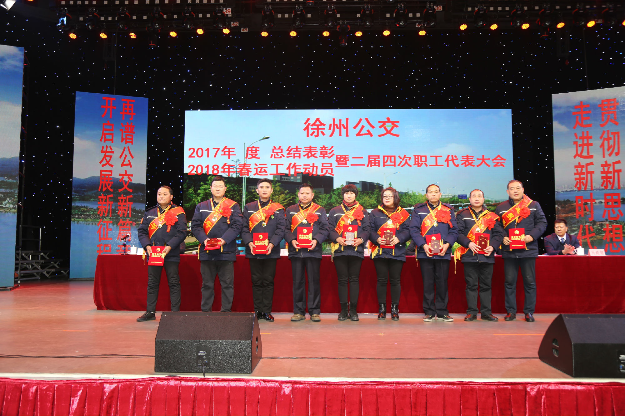 大會在莊嚴的國歌聲中拉開序幕。公司董事長、總經(jīng)理杜紅軍首先作經(jīng)理工作報告,對2017年“改革創(chuàng)新年”工作進行了全面總結(jié):一、實施“同城同價”,優(yōu)化運營管理,實現(xiàn)服務(wù)水平新突破。連續(xù)第五年面向全市征集線路線網(wǎng)優(yōu)化意見近3000條,據(jù)此新辟優(yōu)化線路29條。二、深化資源共享,在互聯(lián)網(wǎng)+企業(yè)管理上譜寫新藍圖。繼續(xù)深化集中維修,推行集中例檢。論證實施支付寶、微信、銀行卡閃付等智能化移動支付方式。三、深化文明創(chuàng)建,打造優(yōu)秀公交,服務(wù)民生出行贏得新口碑。在國檢、省檢中未失一分,圓滿完成創(chuàng)建驗收任務(wù)。投訴總數(shù)和有責(zé)投訴同比實現(xiàn)“雙下降”。乘客表揚同比上升近20%。公司在2016年行風(fēng)熱線上線單位滿意度評議投票中名列榜首。率先打造公交行業(yè)禮讓斑馬線嶄新形象,圓滿完成公交反恐防暴工作。四、著力綜合管理,聚合內(nèi)生動能,增強企業(yè)發(fā)展新優(yōu)勢。重新修訂2012版管理制度匯編和新版《徐州公交獎懲條例》。五、踐行十九大精神,推進和諧發(fā)展,開創(chuàng)黨群工作新面貌。接著,杜總分析了工作中存在的問題,提出下步工作重點。一、建設(shè)現(xiàn)代化公交,提升經(jīng)營管理水平,保障企業(yè)良性有序運行;二、踐行集約共享理念,深化科技應(yīng)用,開創(chuàng)公交事業(yè)發(fā)展新局面;三、建設(shè)平安公交,提升服務(wù)口碑,展示文明公交新形象;四、踐行十九大精神,構(gòu)建和諧公交,開啟黨群工作新面貌。
